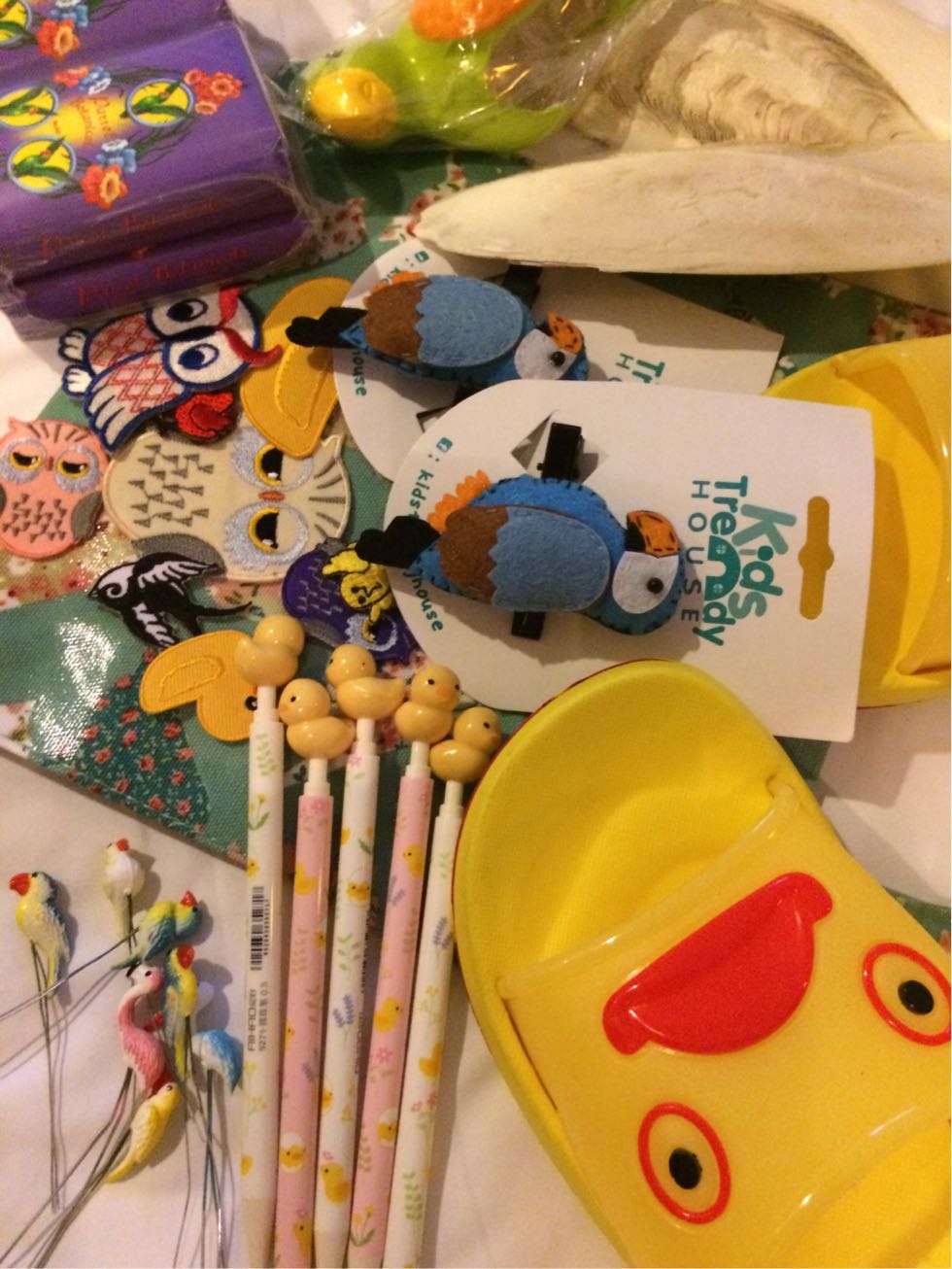 ヒヨコさん(アヒルさん?)草履も可愛いし、奥のフクロウさんのアップリケが可愛いじゃなーい♪
