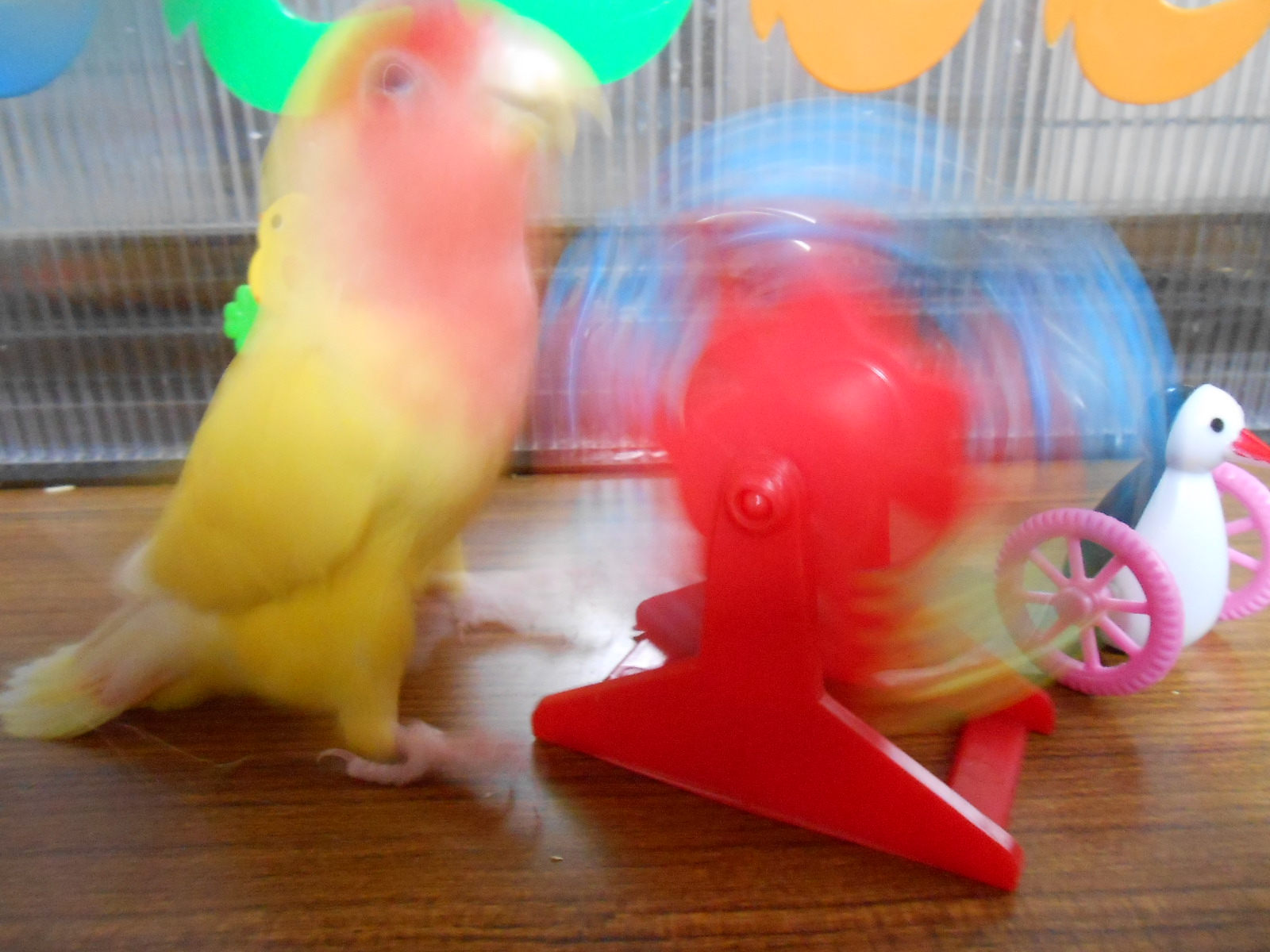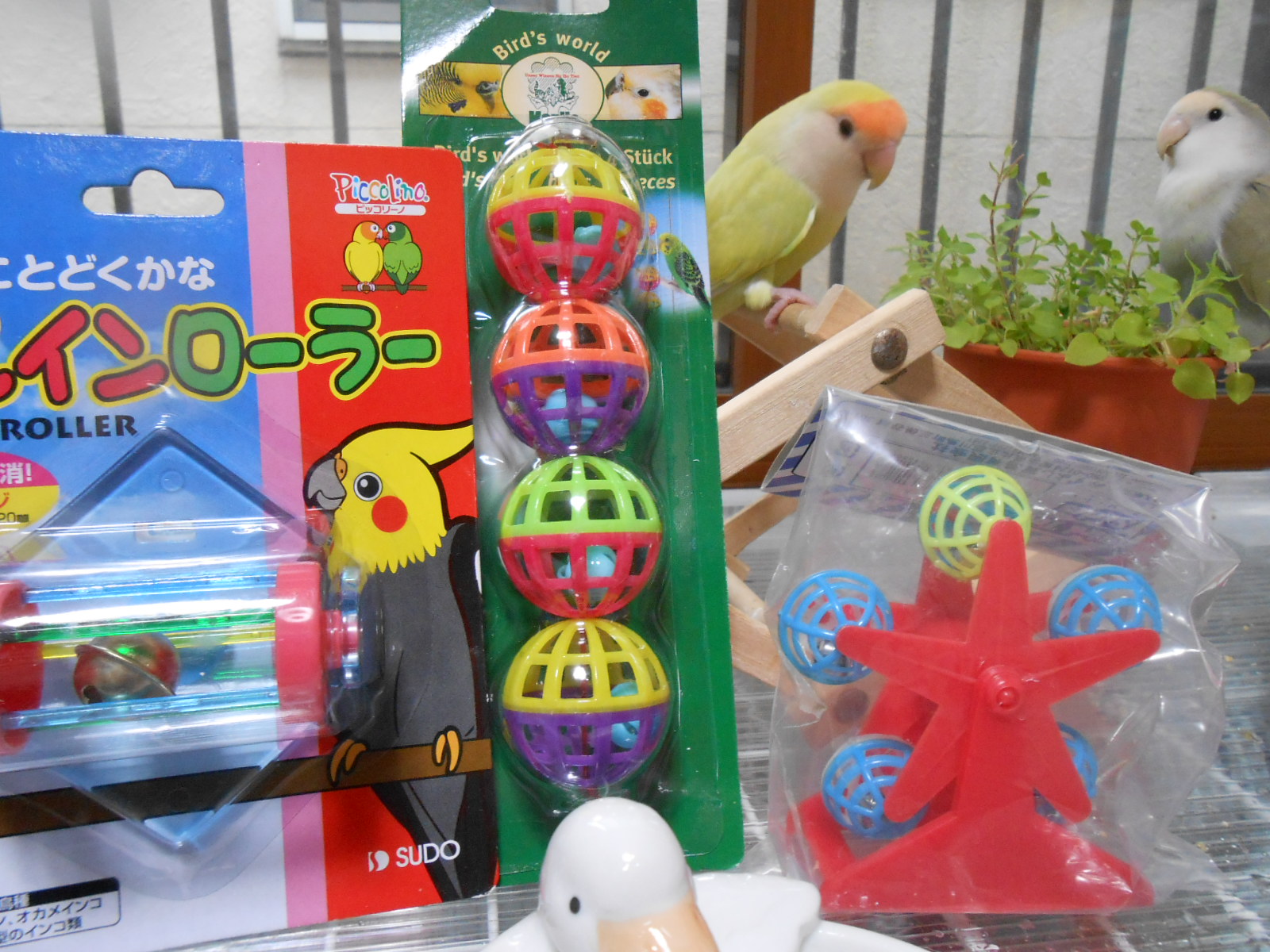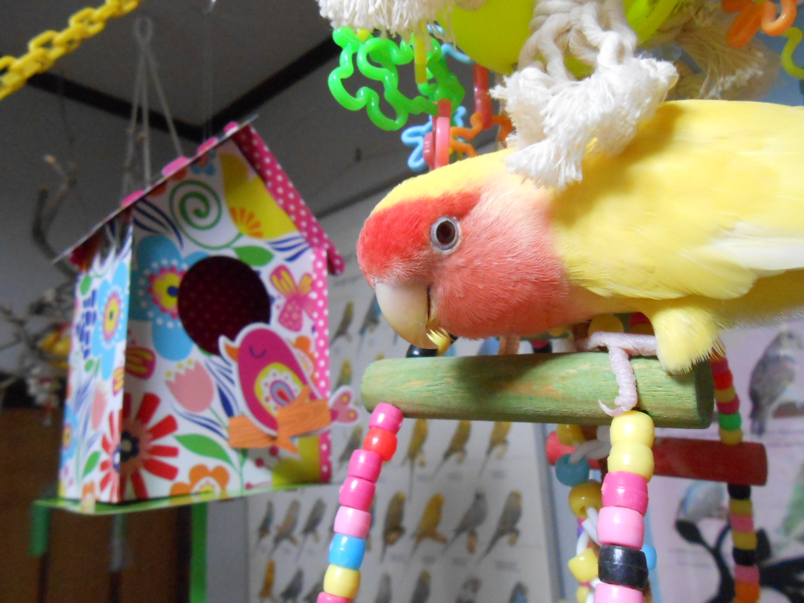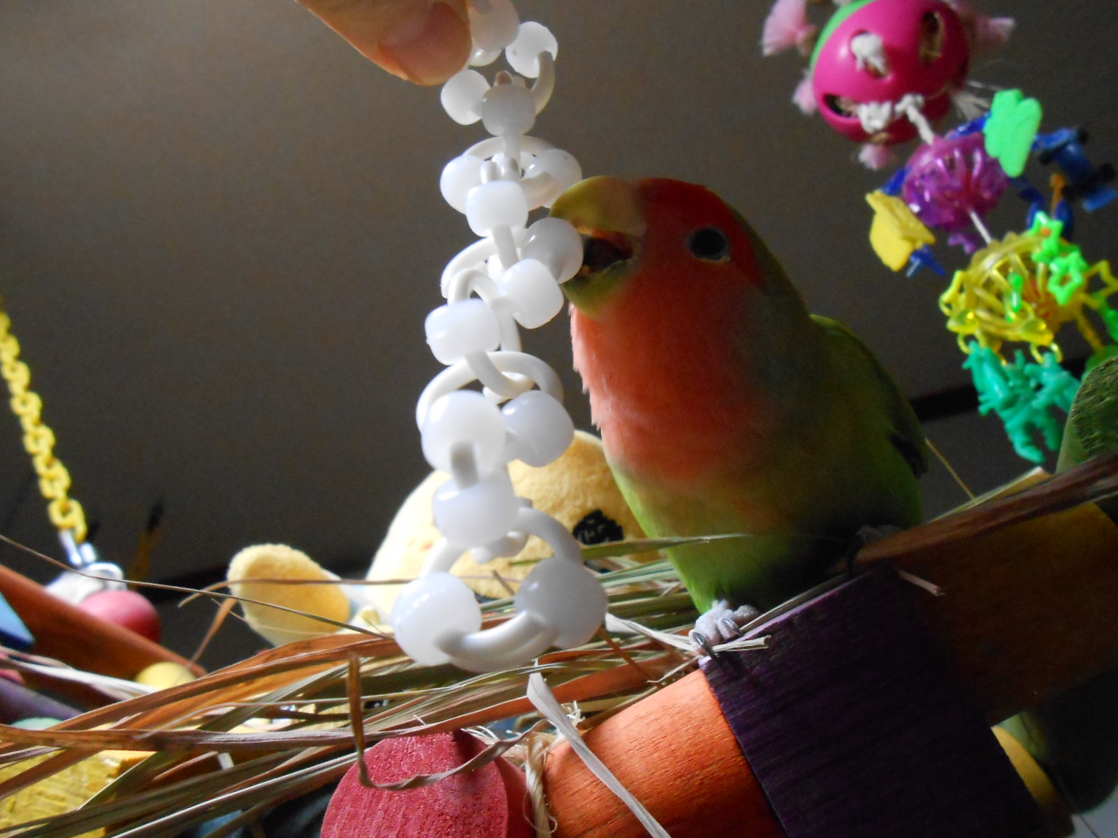 それから、なつえさん作の鳥さんが大好きなビーズとリングをつないだおもちゃなんですがね、