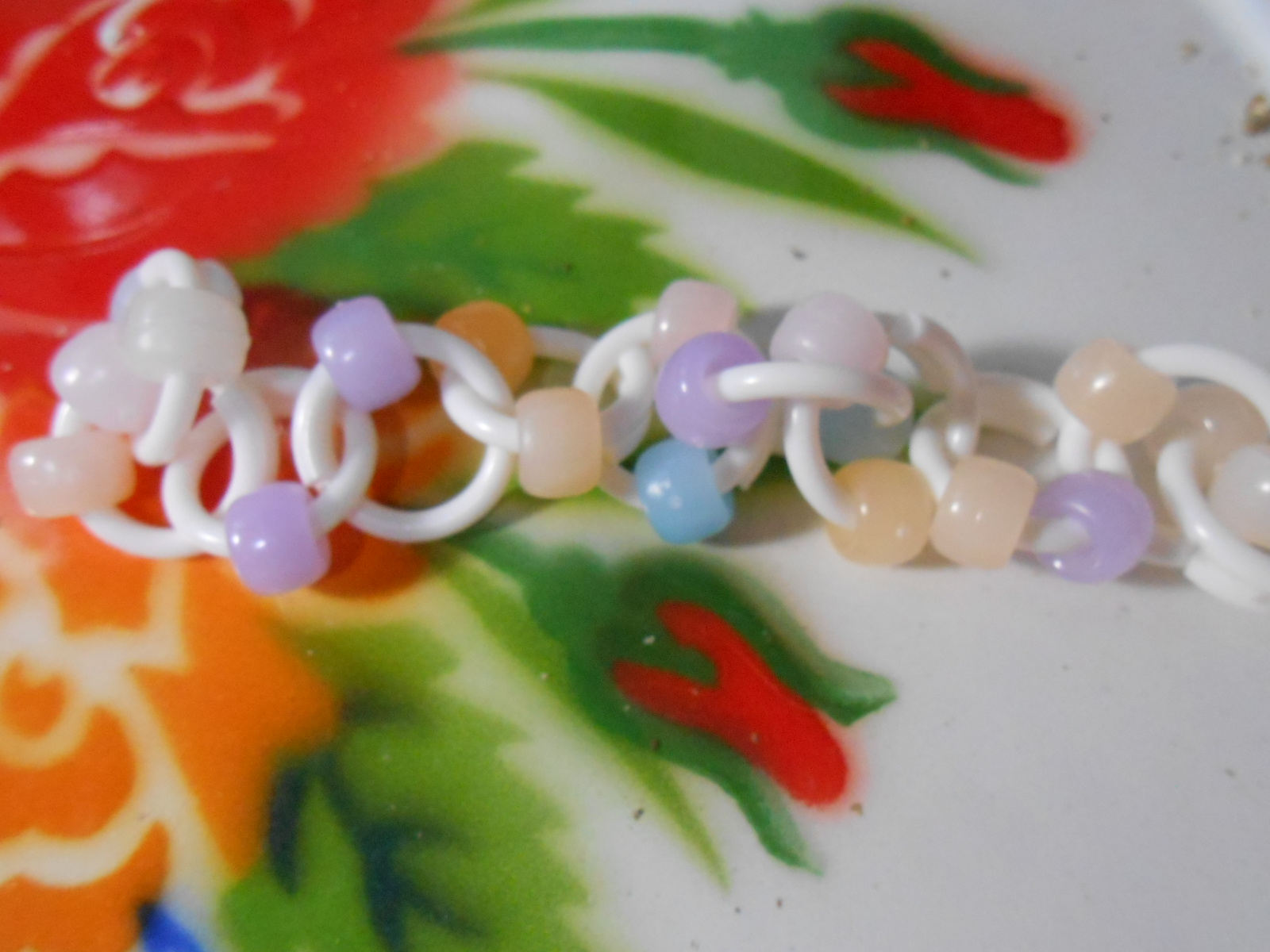 一見、鳥さんに大ヒットなおもちゃ系の白リングに白ビーズの品良くまとまったお品なんですが、実はこれにはアレま、ビックリ