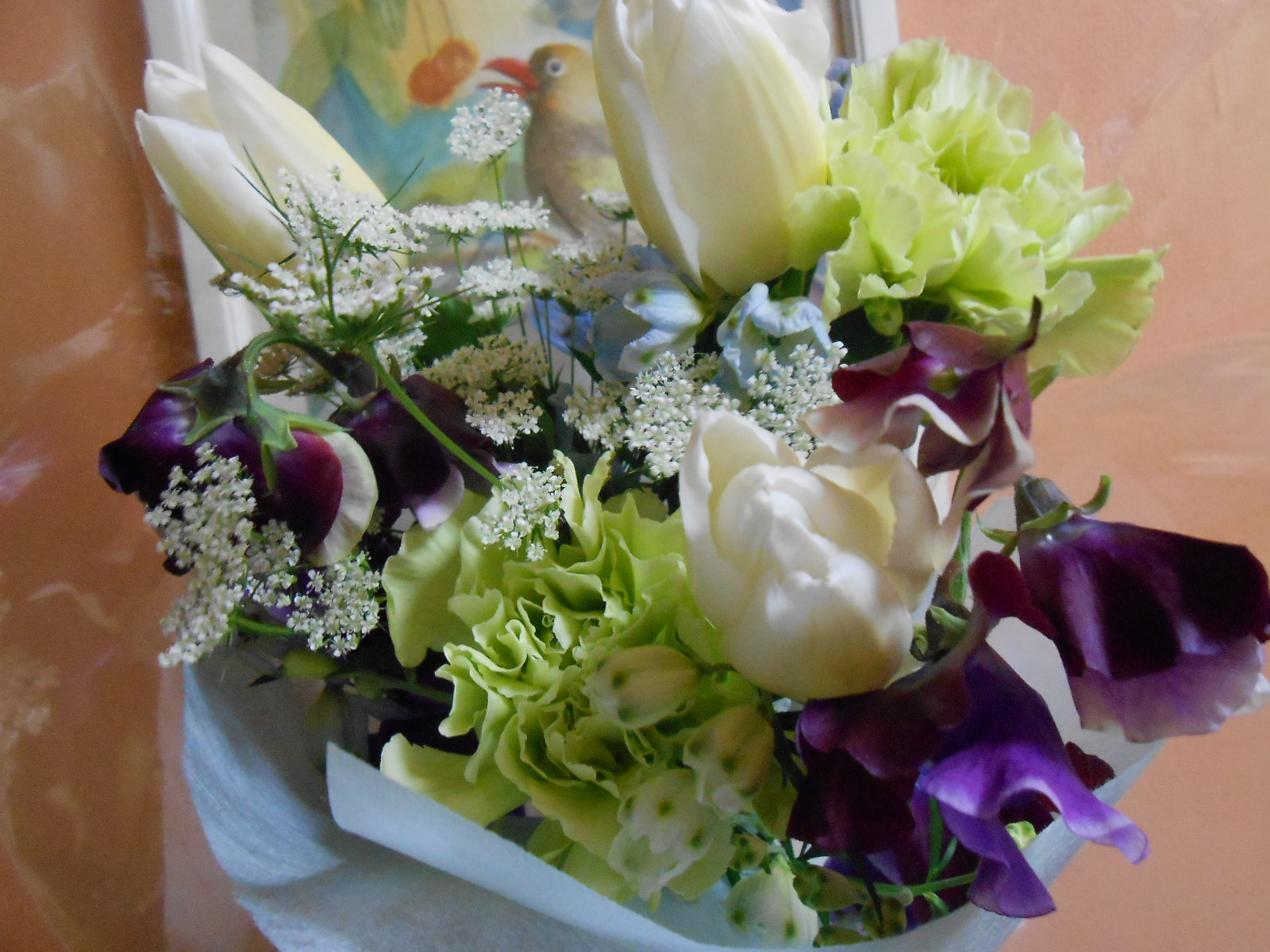 たまっぺさんも私が花を用意してなければ写真もまだ飾ってない事をお見通しなのか、とてもとても可愛いカードでお手紙くださいまして気に入ってしまったので、そうだ写真の代わりにこのカードを飾らせてもらおう!と