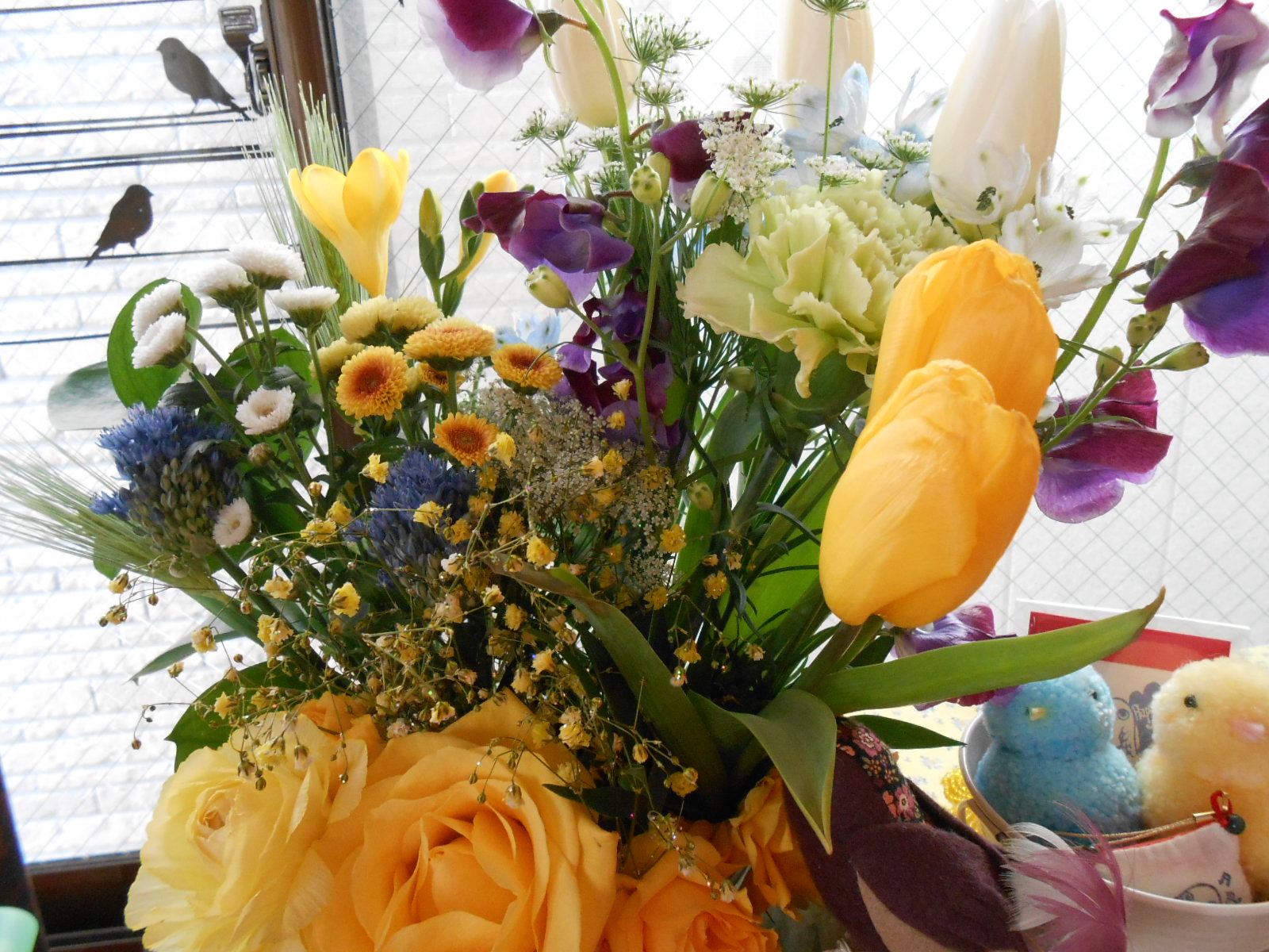 fukinさんから頂いた黄色いお花もまだ咲いていたので一緒に飾らせてもらいました