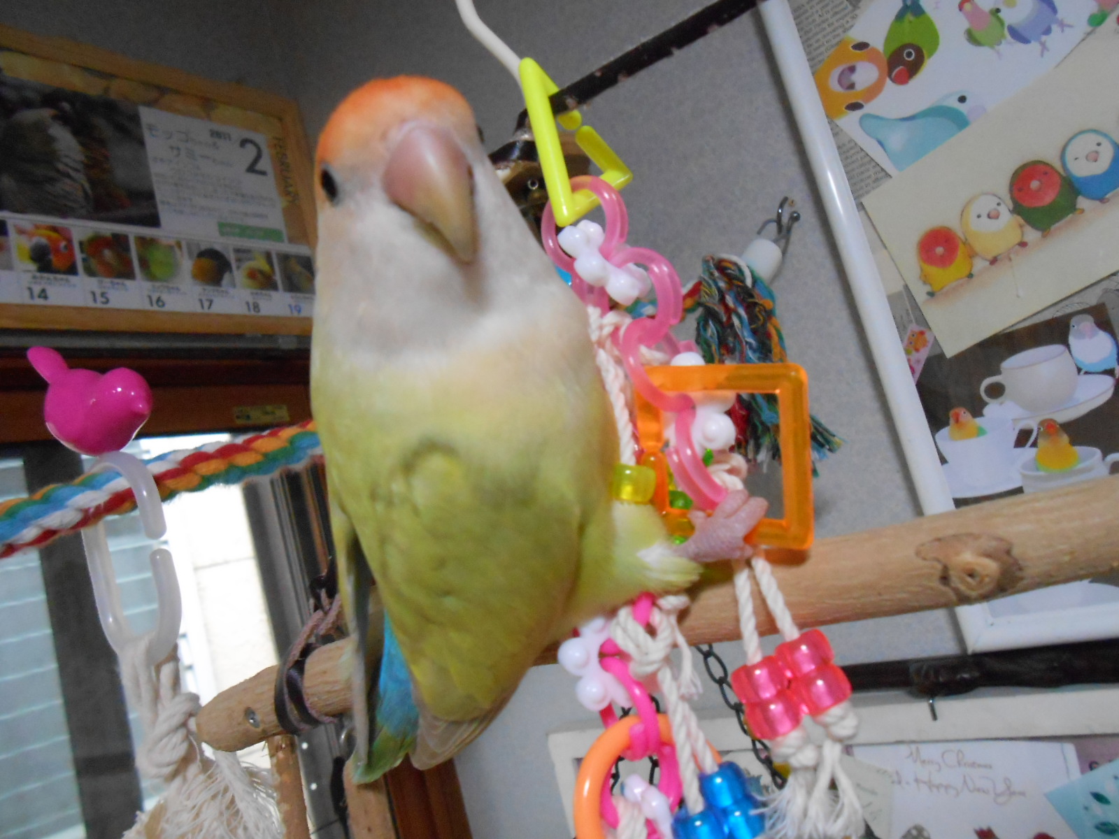 って、おもちゃ可愛い!!可愛いおもちゃで遊ぶとりさんに燃えた!!