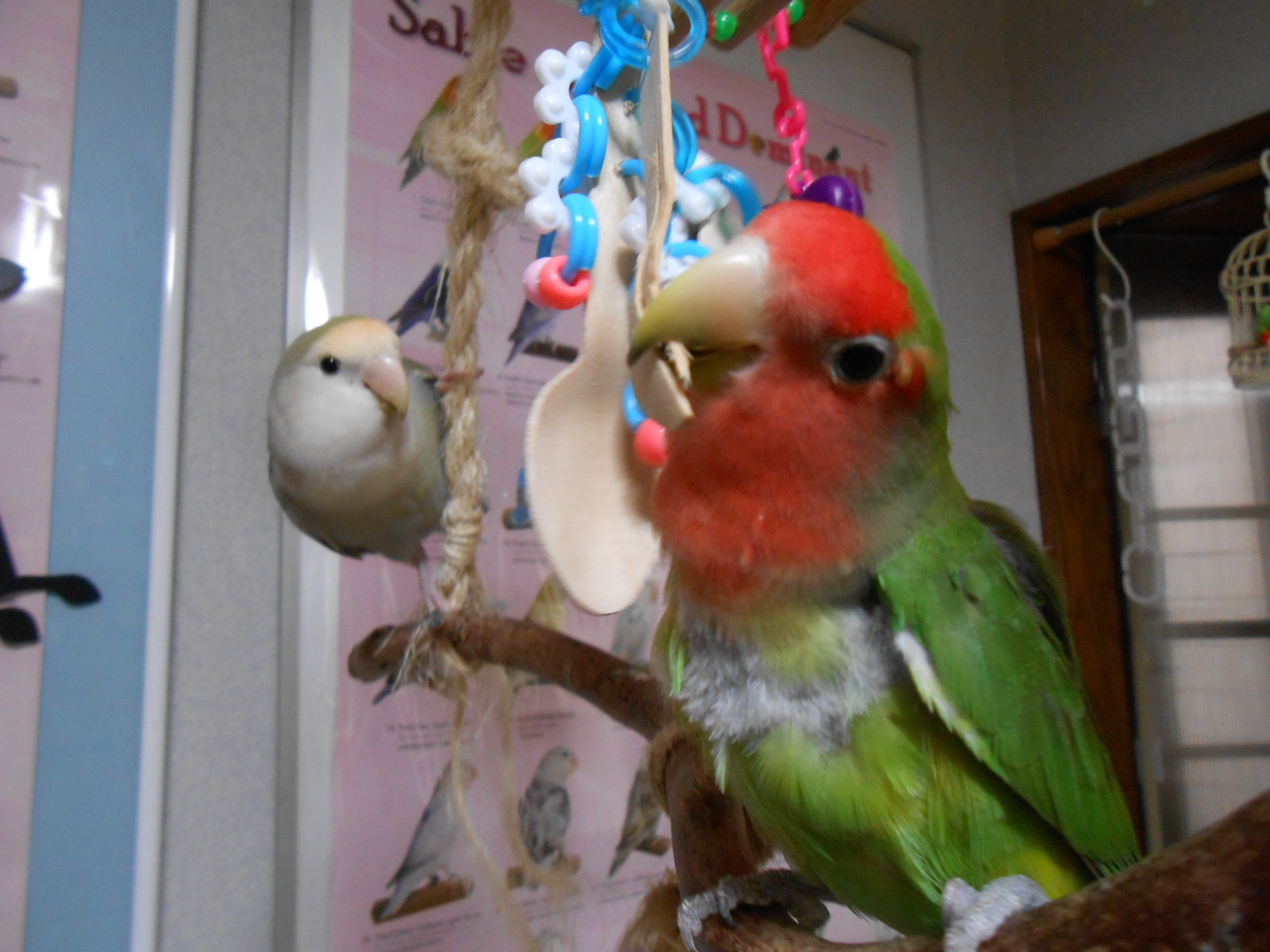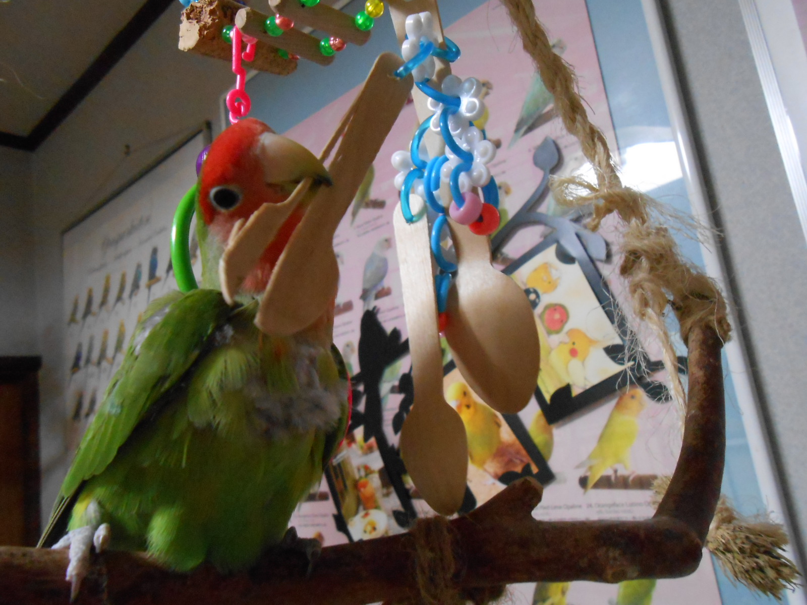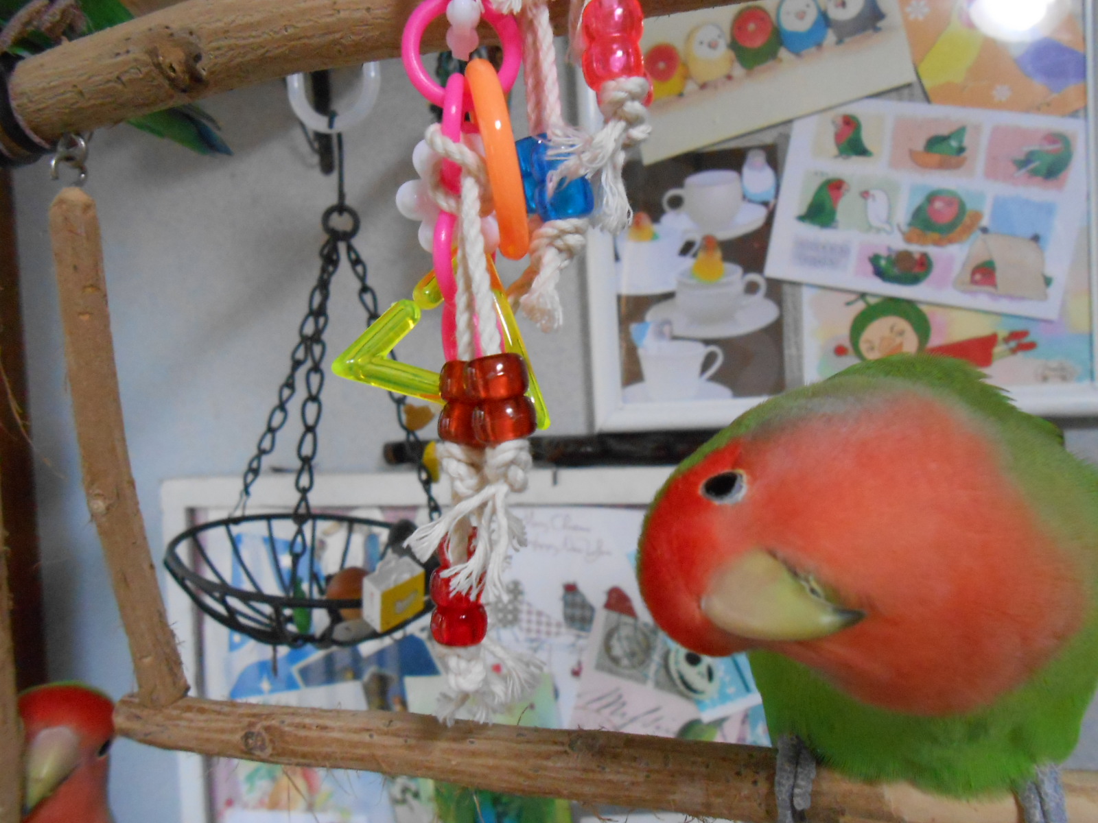ちゃえさんのジャラジャラビーズ大人気!鳥さんの心掴むね~、ちゃえさんてば!