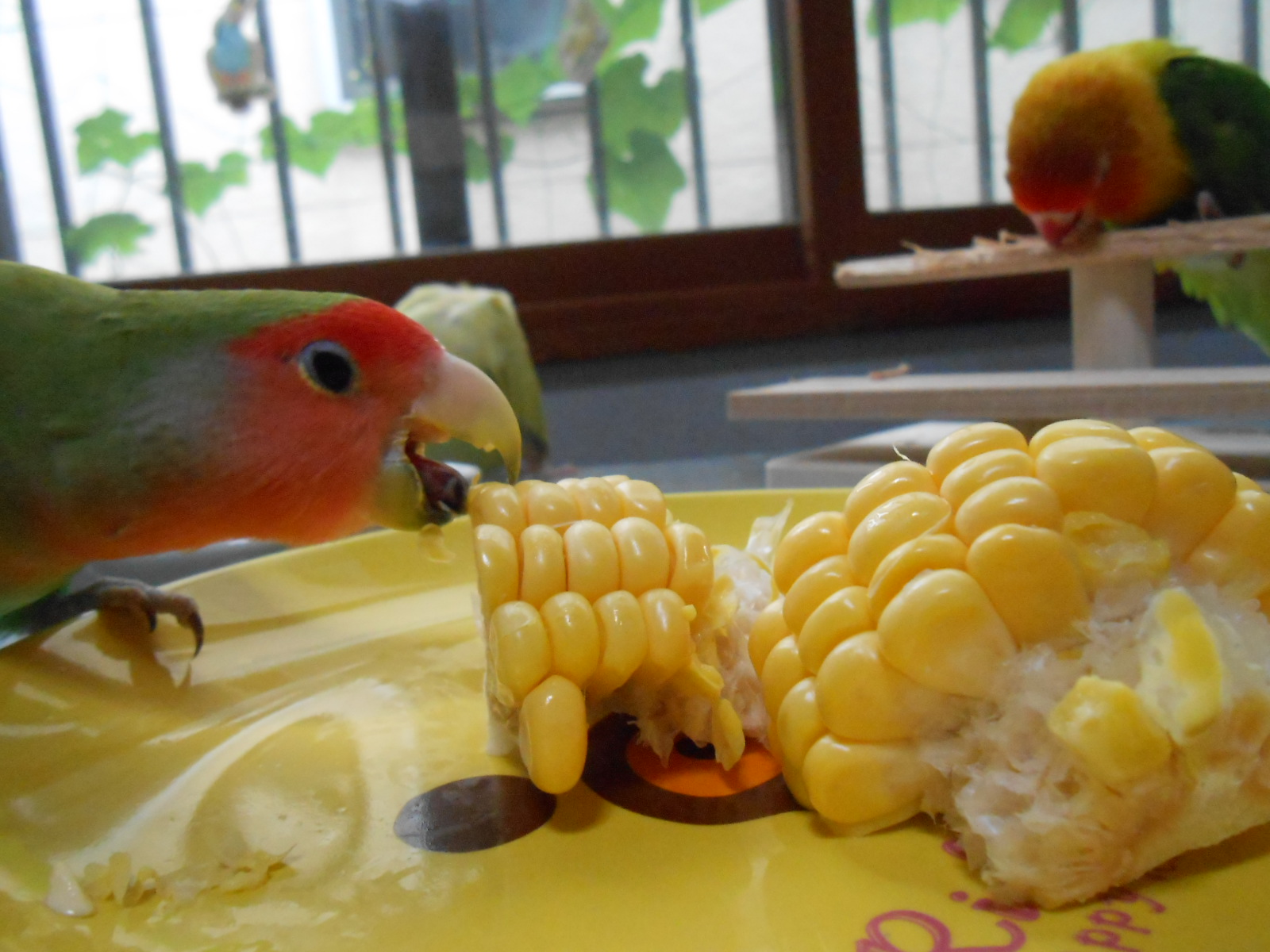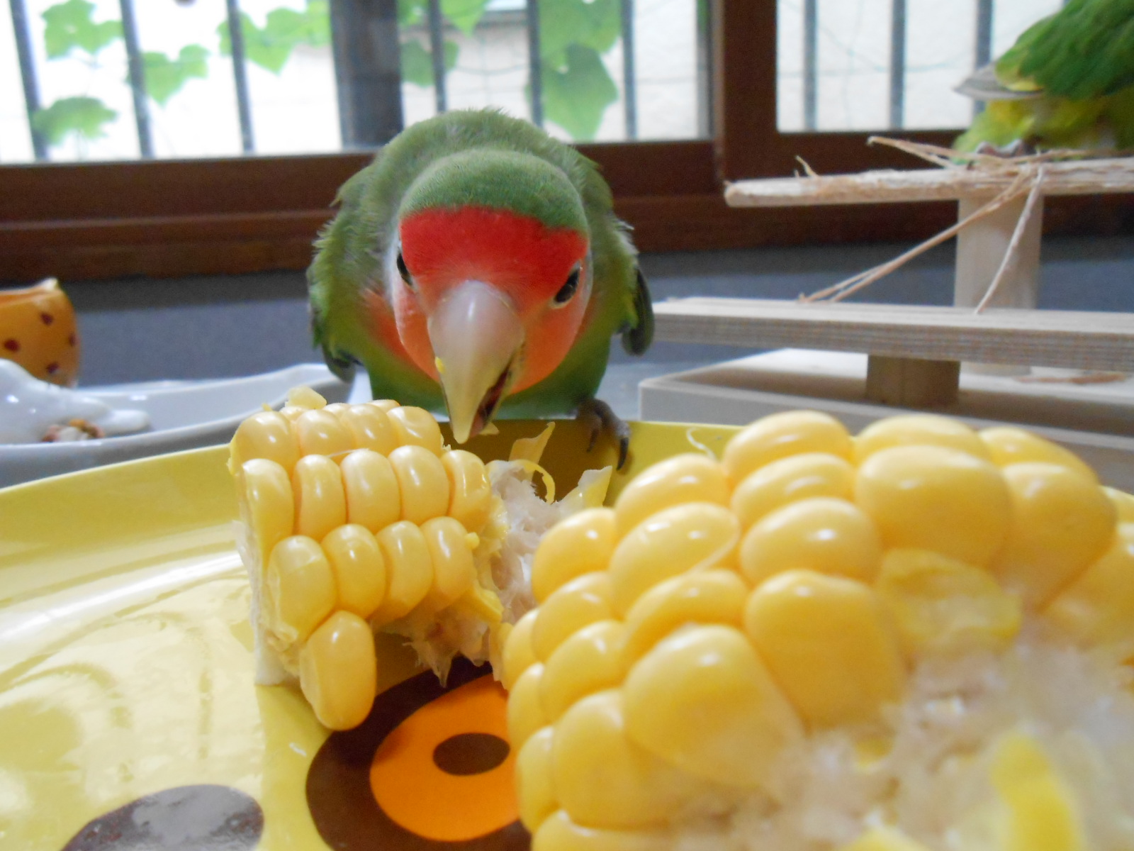 モロコシ食す鳥さんのお顔はシャッターチャンスいっぱいですよね~