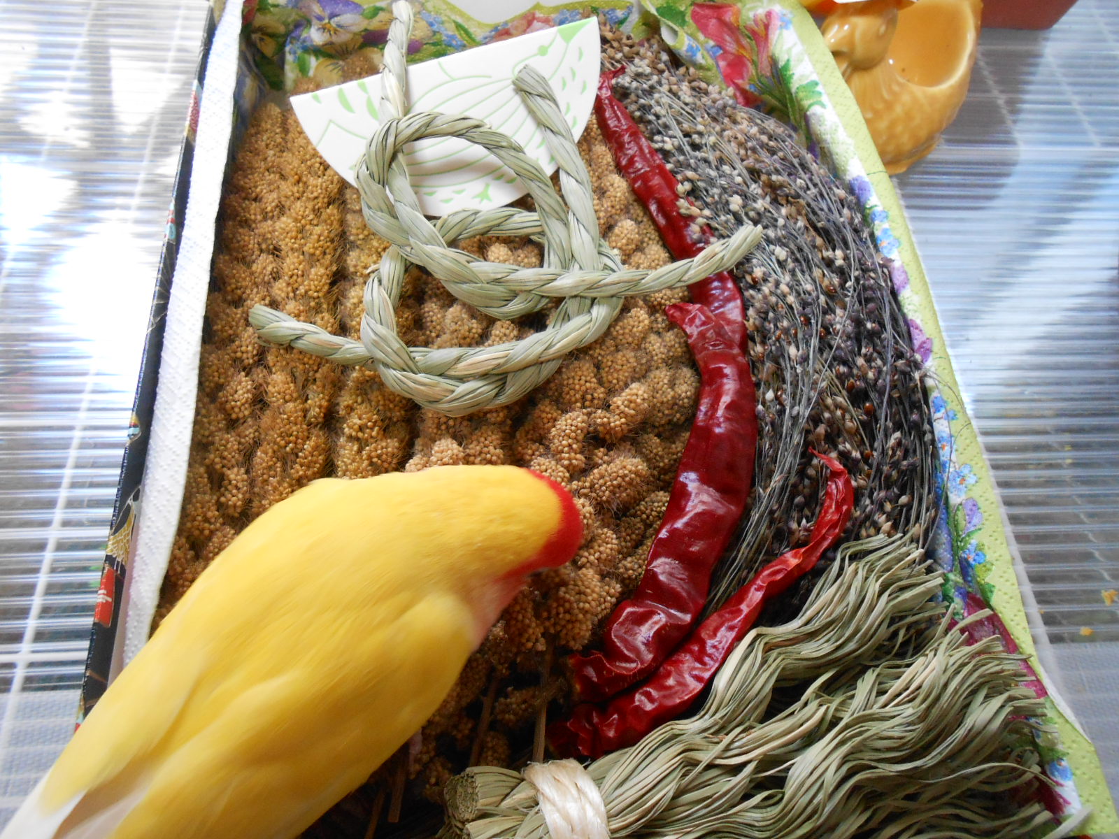 粟穂の殻舞い上がりまくりのお正月。お正月は賑やかなのがいいんです
