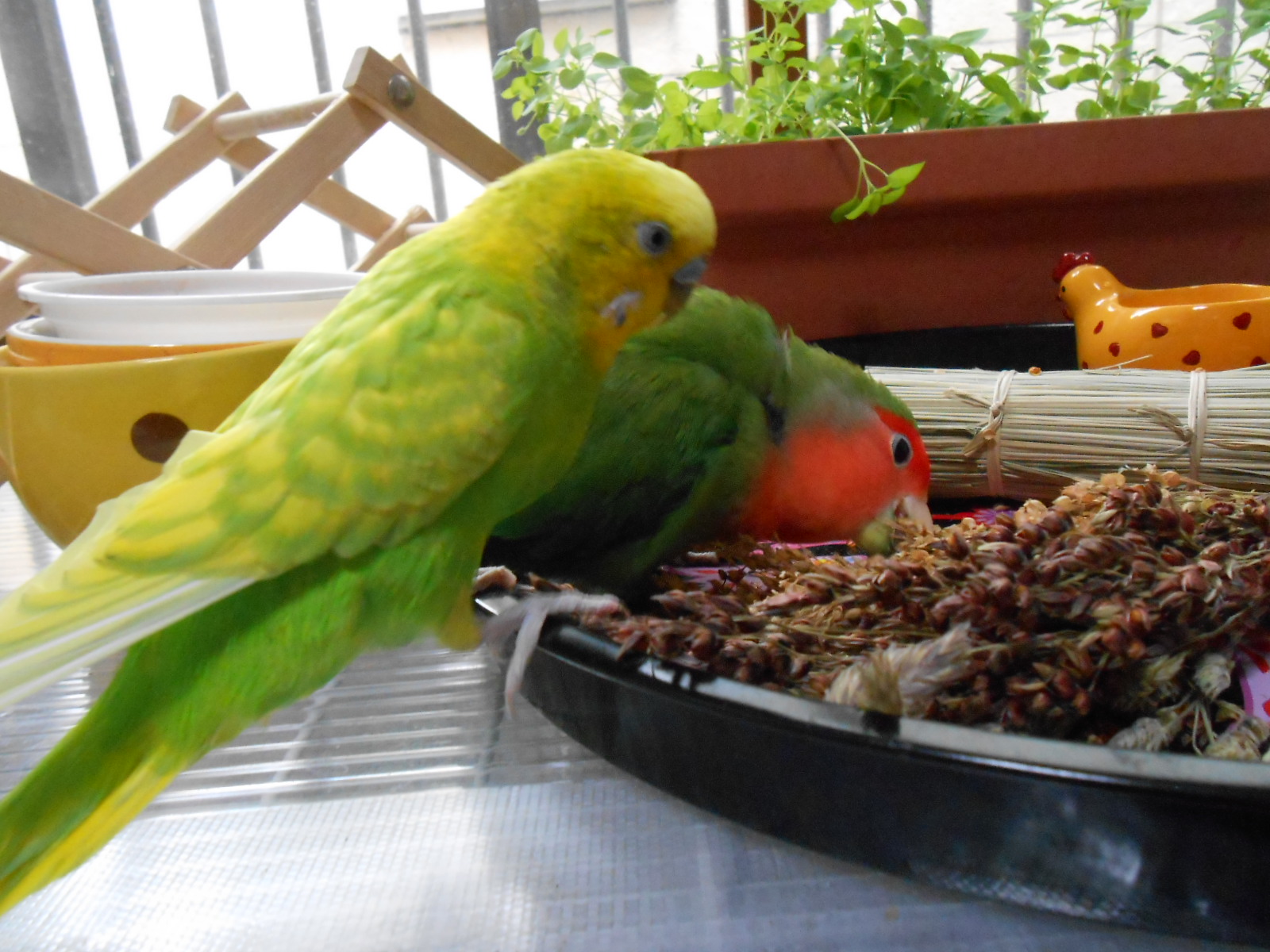 タケちゃんもお正月ホモのには参戦しないと!! 案外セキセイさんてコザクラさんより食いっぷり激しいのよね