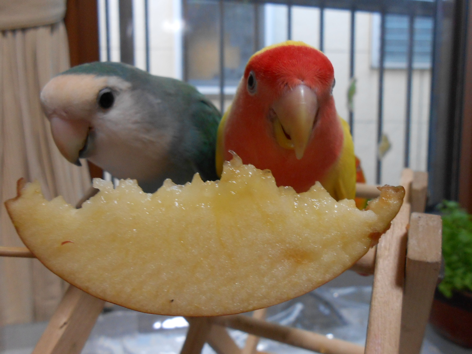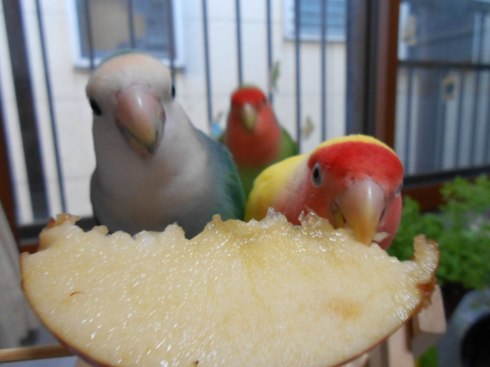 まーほどほどにしてますけど(ってほどほどの齧り具合に見えませんがー)うしろからのぞいてるのは・・・インコマンにしか見えなくて誰だか識別つきませんっ