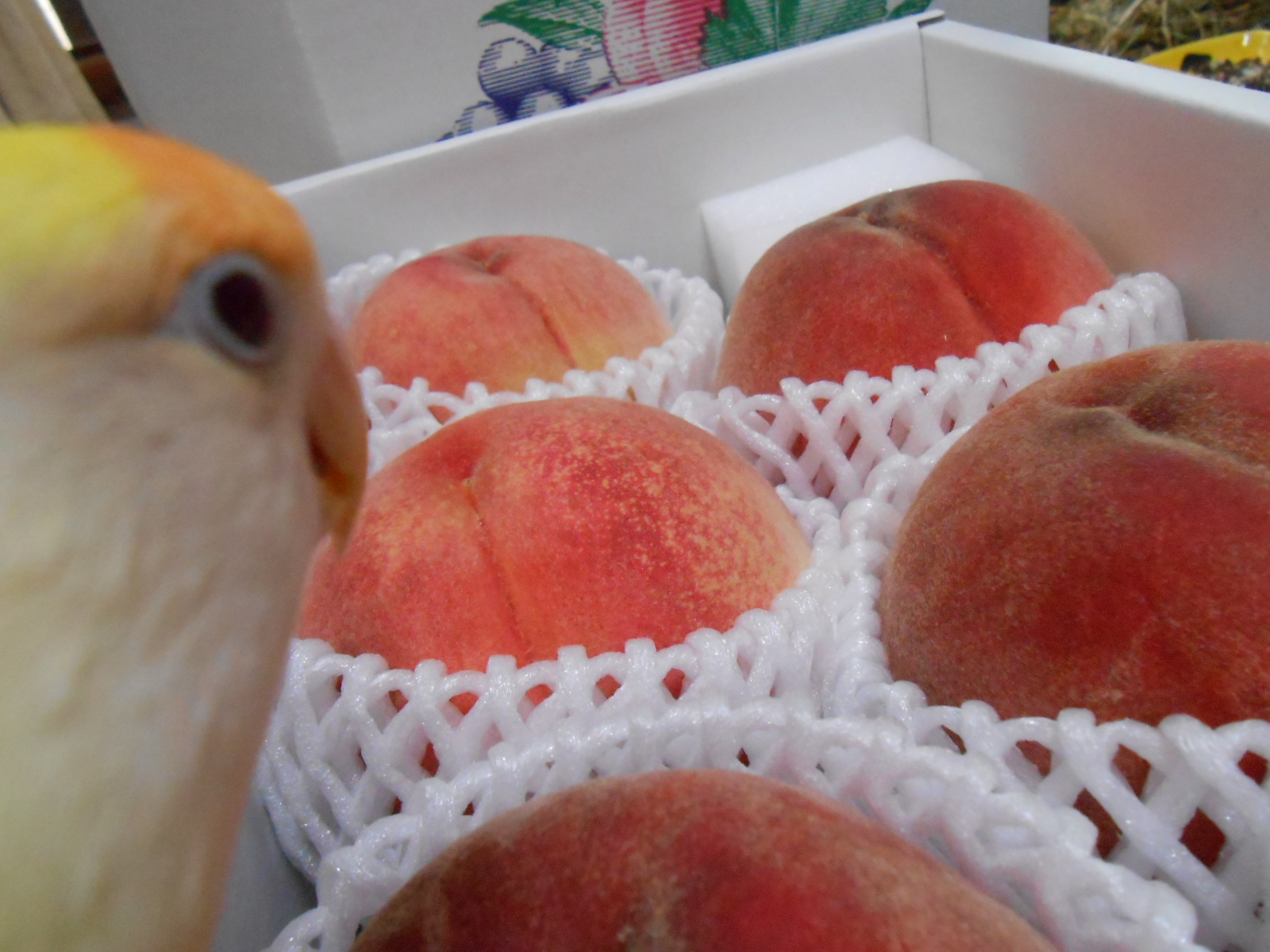 桃ー!スーパーで匂いだけ嗅いで食べた気にしてます〜(≧∇≦)