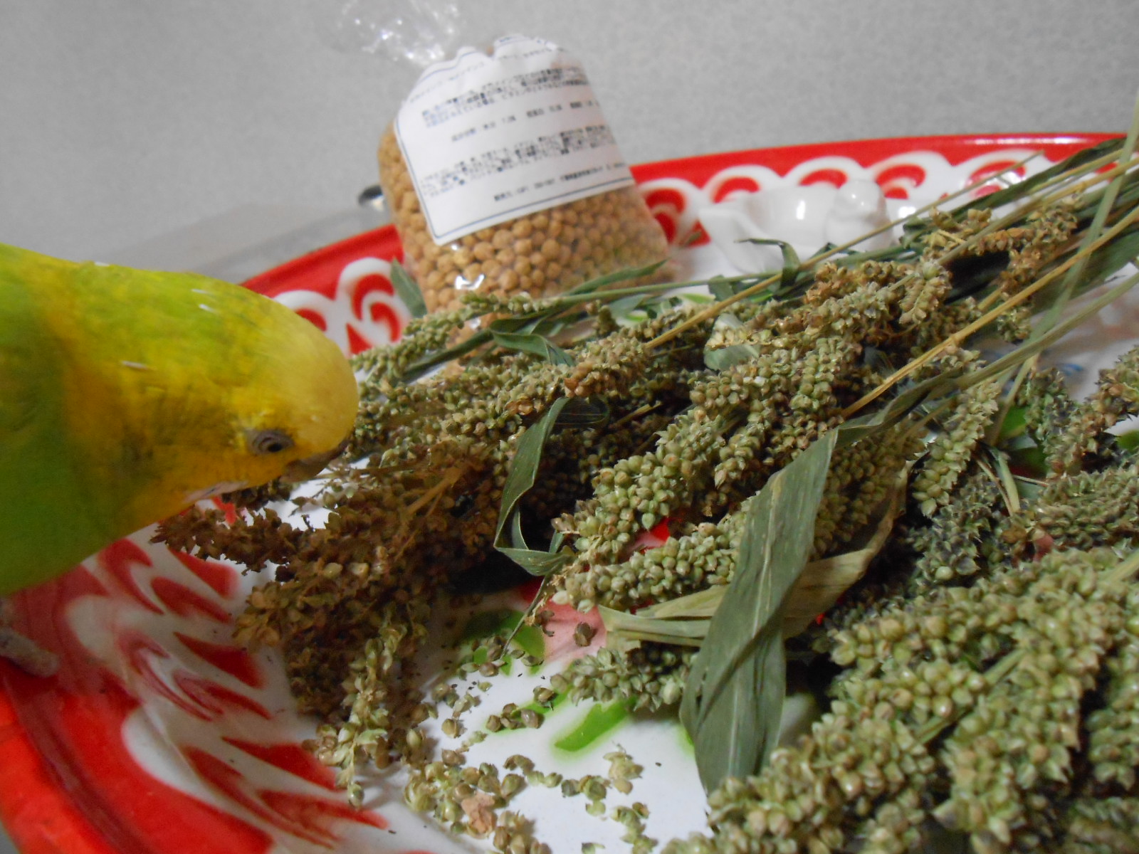 こちらの現物ヒエ穂と新しいペレット(名前忘れましたが人気ありました!)もみかんさんの代わりに