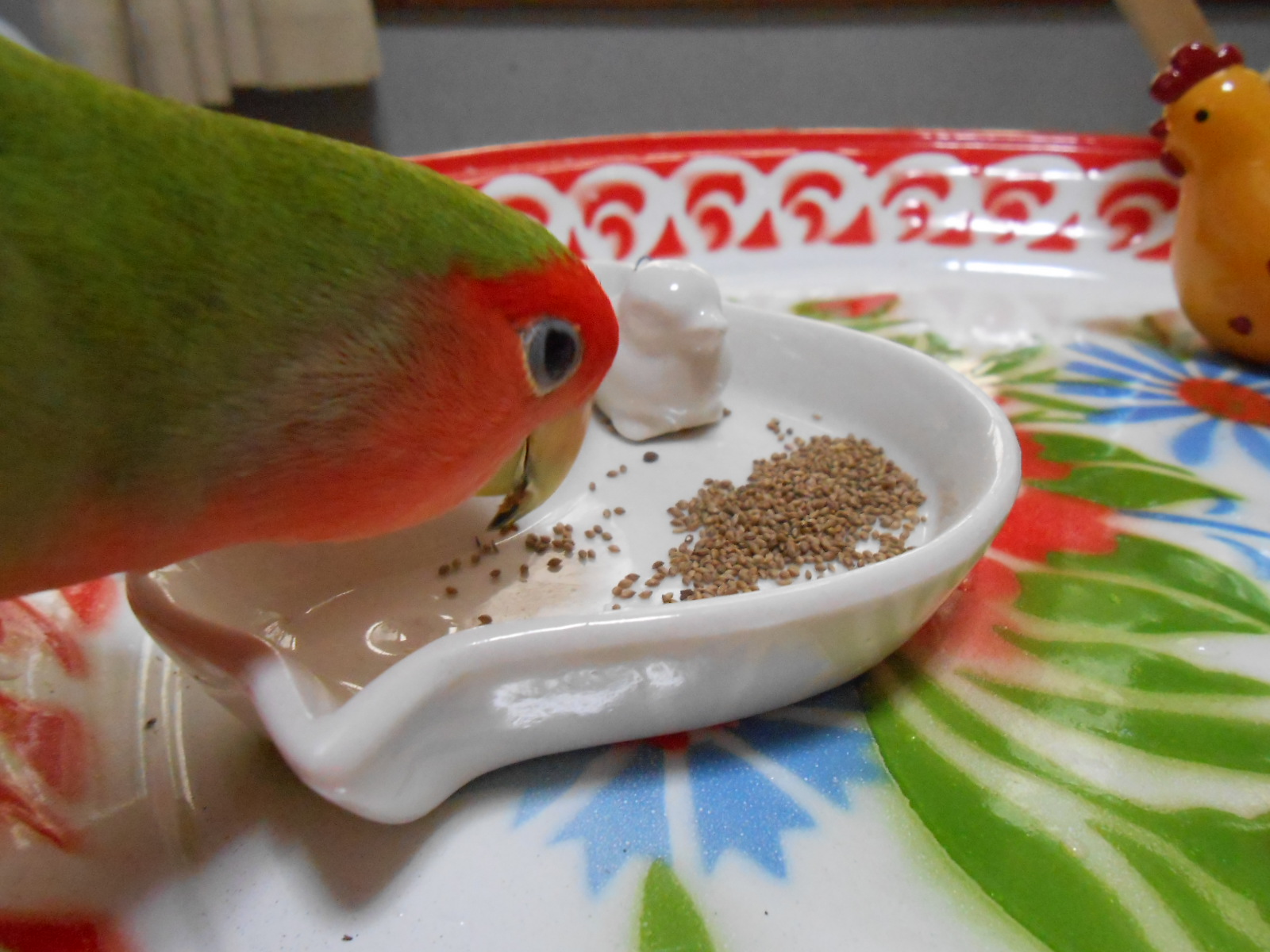 ” 近くに住んでる者なのですが私もコザクラインコを飼ってまして。一羽なんですけどね。これ今朝届いたんですがよかったら・・・。つまりですね、一羽じゃ食べきれないのでよかったら、です ”