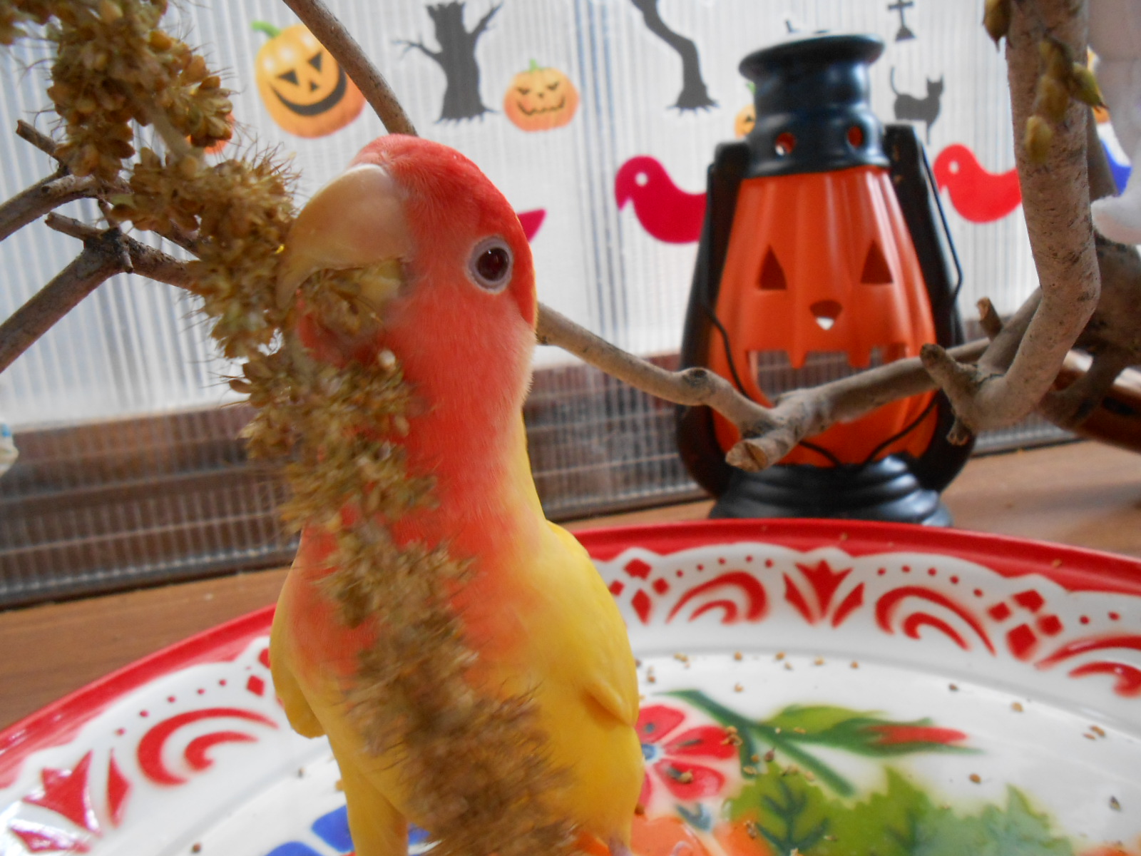 と、特に説明もいらないかと思いますが、鳥さん部屋がただいまハロウィン仕様になっております