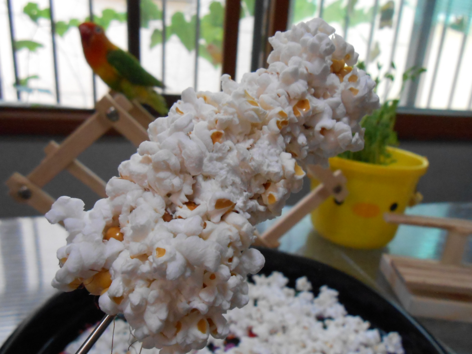 )モロコシまんまポップコーンがまたウケてるんですよ~、鳥さんに!