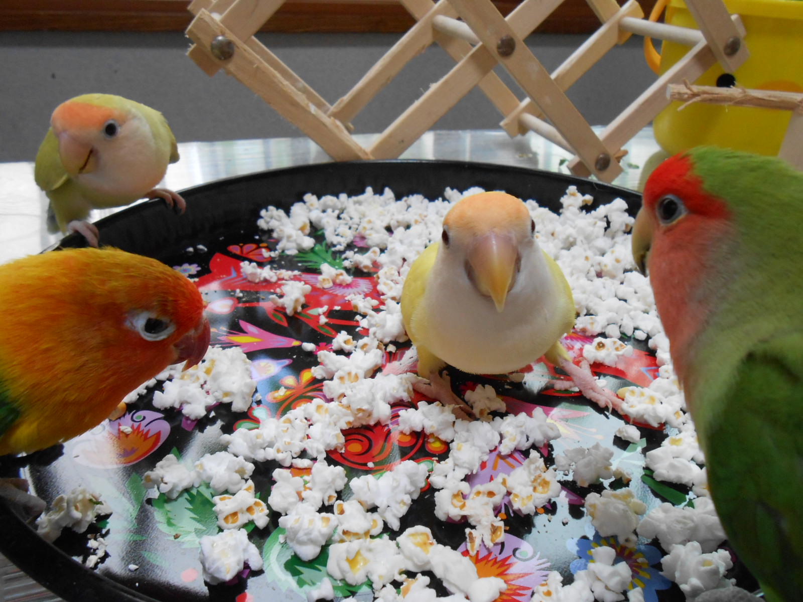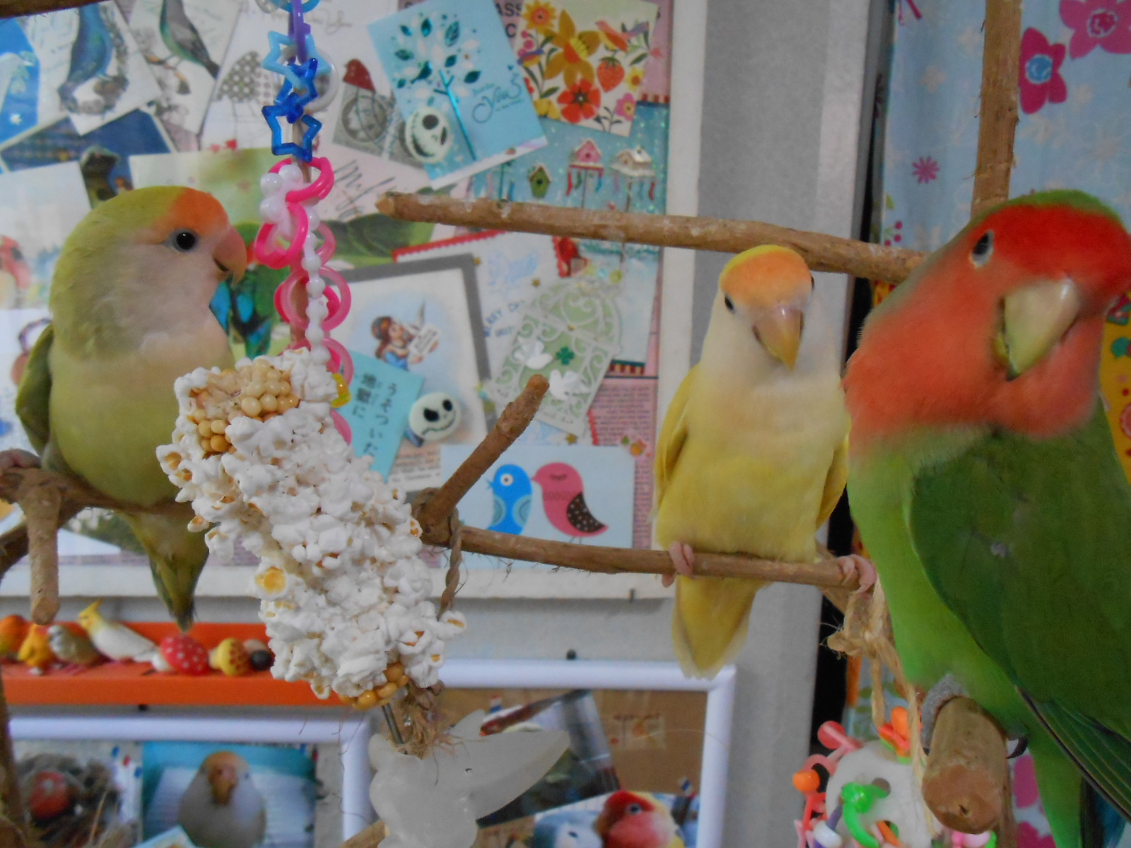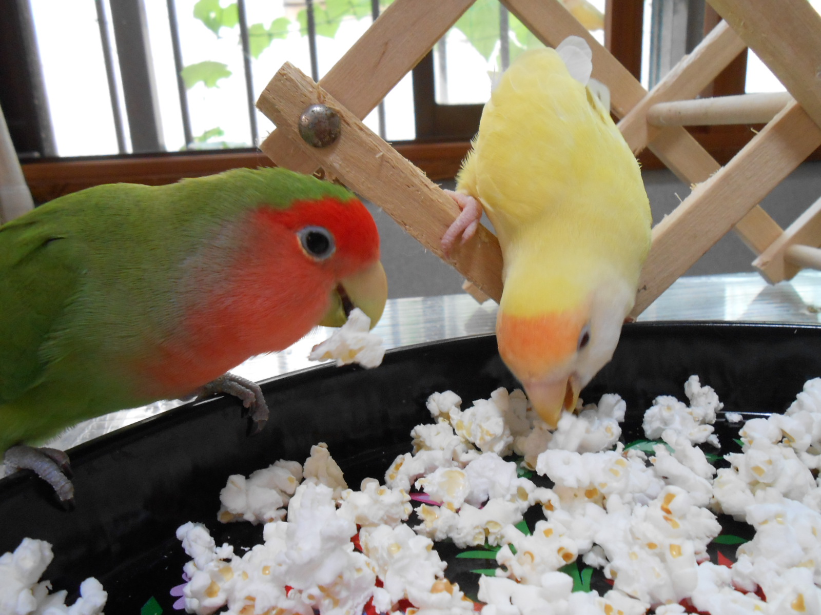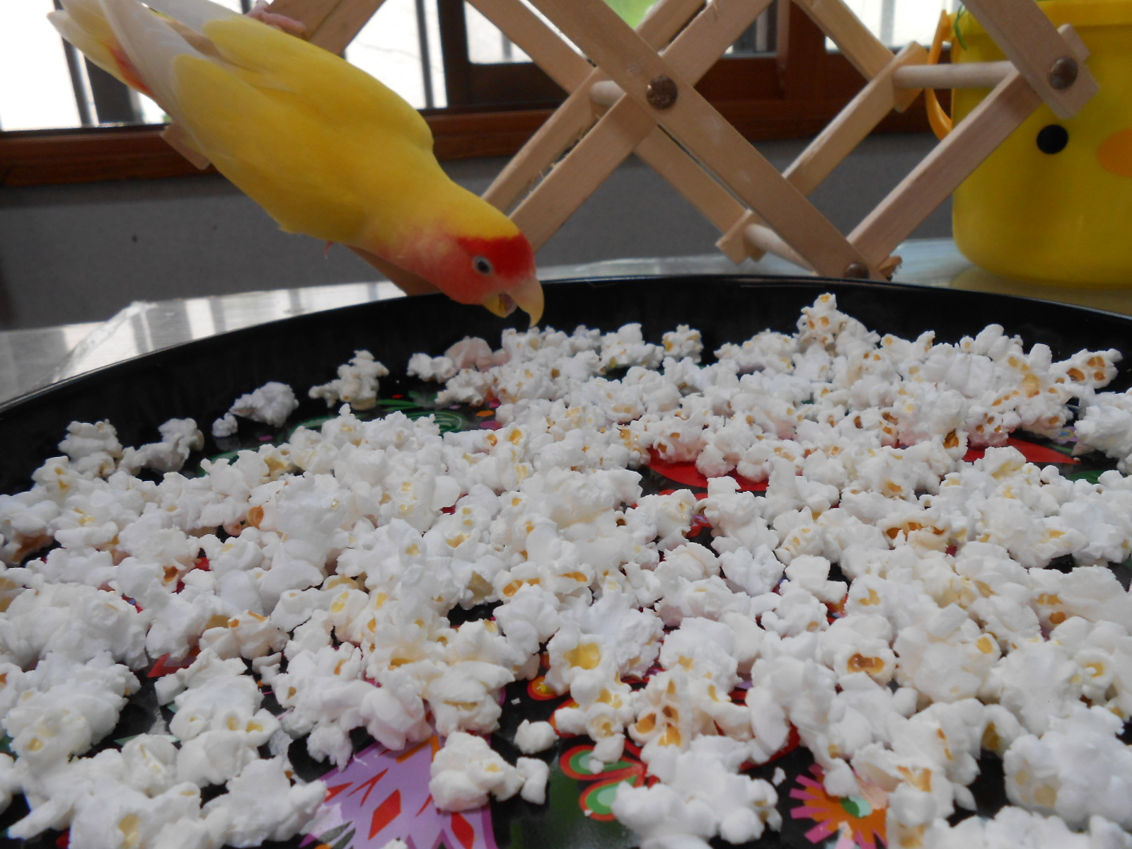 と、ここまではノリのいい鳥さんがノリノリでポップコーンつまんでおりますが、慎重派の鳥さんはやはり見慣れないモノはお気に召さないんでしょうね~~