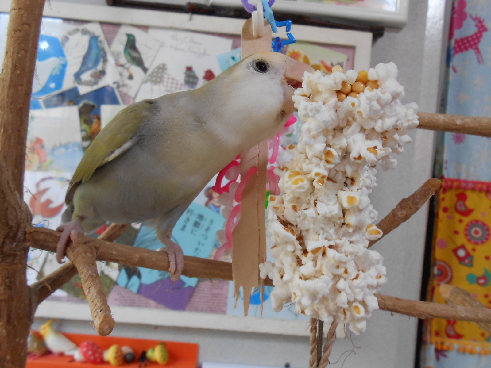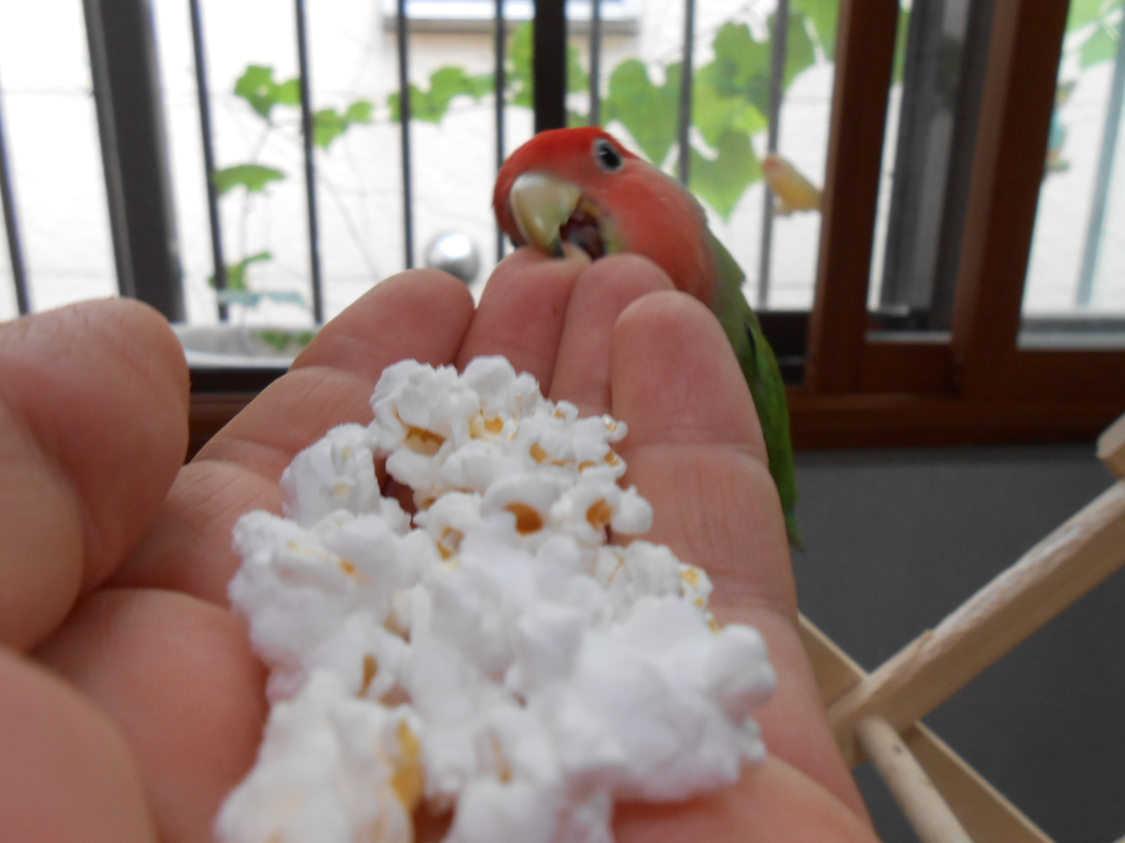 モロコシまんまポップコーンがまたウケてるんですよ~、鳥さんに!