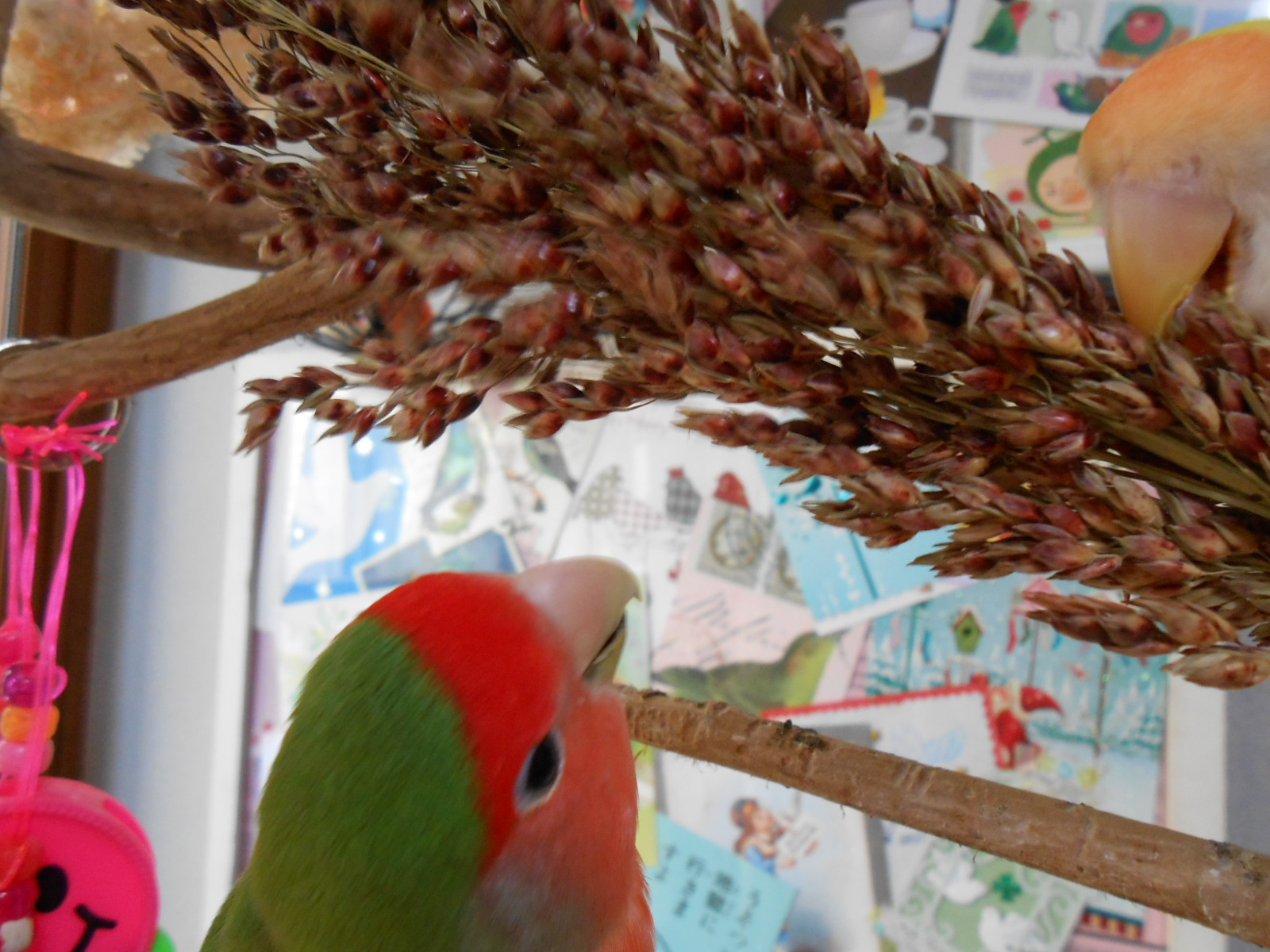 まだ粒にたっぷり水分も含まれてますし、生粟穂みたいな感じですかね~~。鳥さんが食べると青臭いニオイがしてきます~~