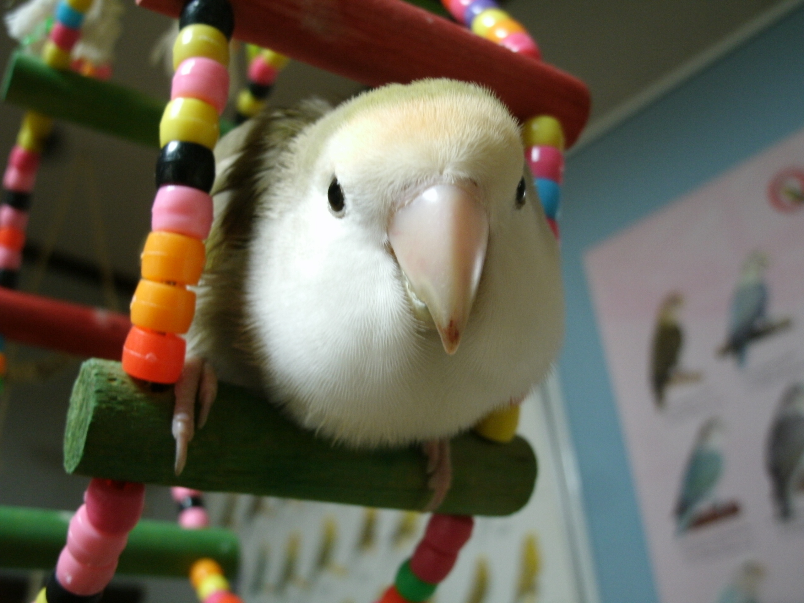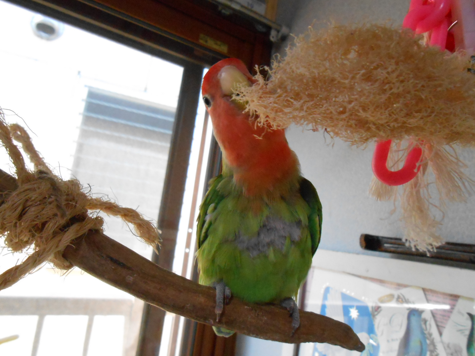 調子上がってくるとなんでも齧るインコさん。あるある~~