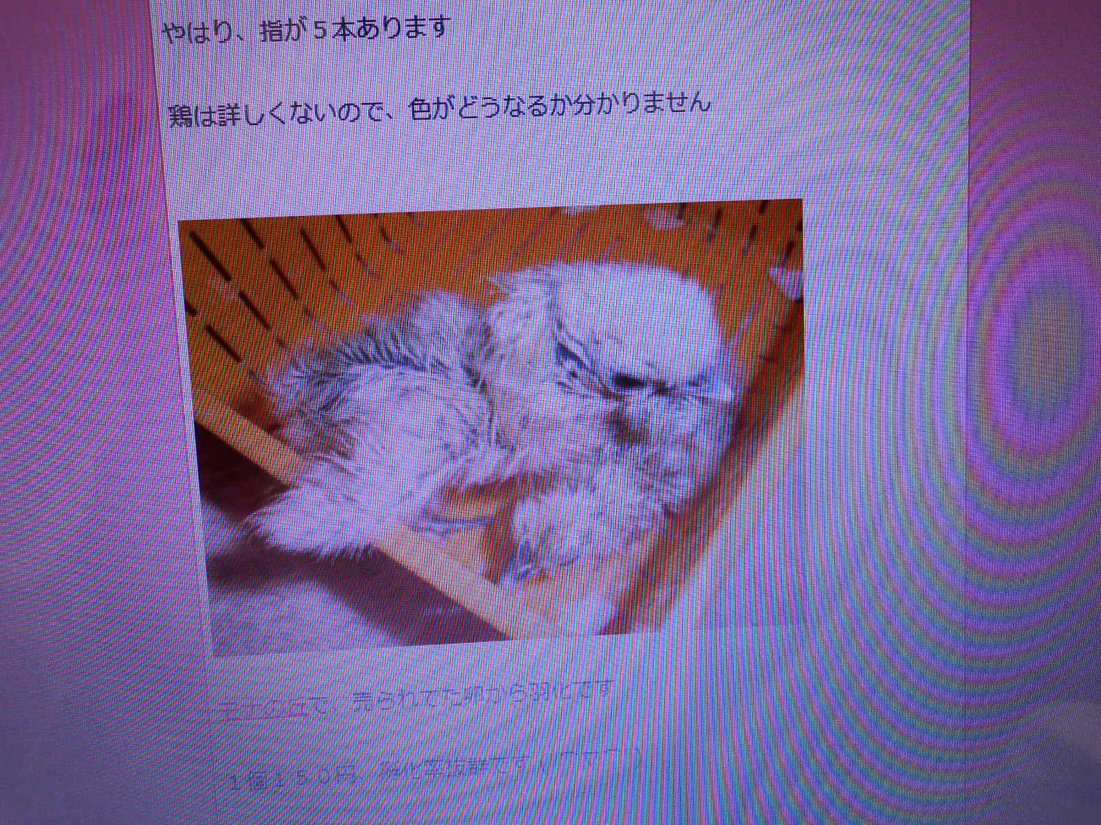 室内家禽バードパークのオーナーのおだっこさんが、地元食材直売所のようなところで烏骨鶏の卵(食用に売ってたやつ)を2つ買って帰りあたためること数日、