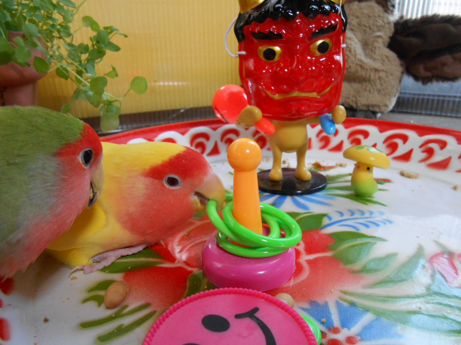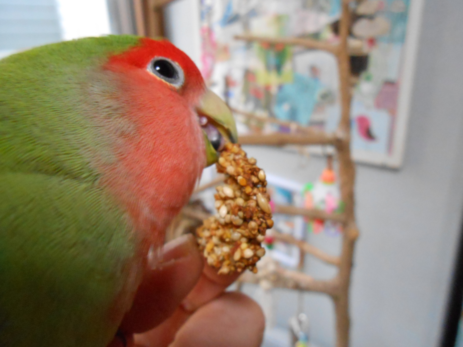 まあ放鳥時におやつ出要らないっちゃ要らないですけど、ちょっとのお楽しみって事でちょっとだけね、ちょっとだけ~~。
