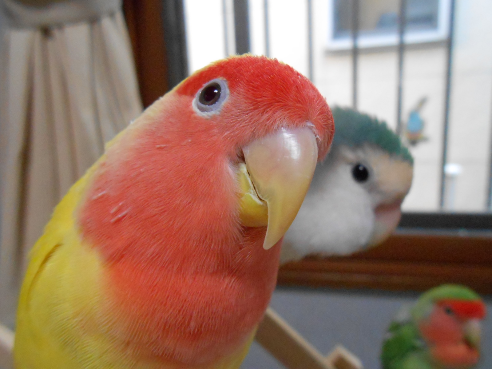 ある日の放鳥中、そのインコちゃんが私の手からおやつもらって食べてるところをまるこさんが割り込んできましたら、インコちゃんが始めてまるこさんに対して激怒りまして立ち向かってったんですよ(笑)あら~、アナタも勇敢なのねぇって。