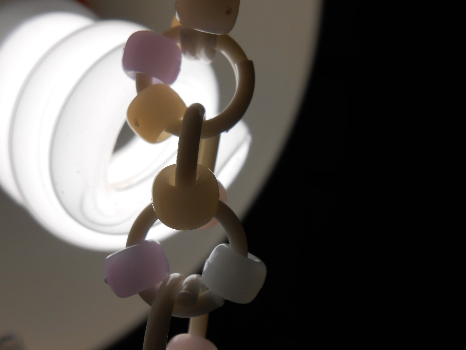 の、ホコリ被ったライトを引っ張り出してきてーのビーズをライトにかざしてみますと、