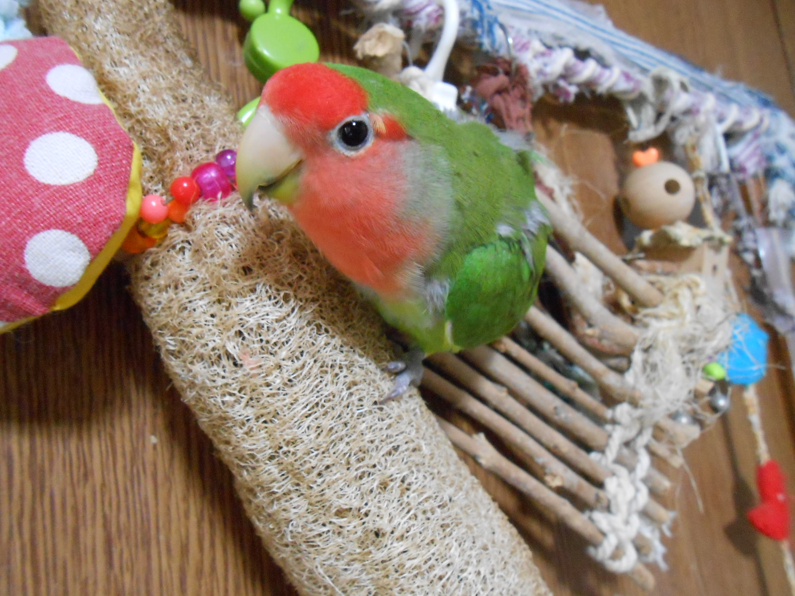ベランダが狭い我が家でもバケツで栽培できてますんで、可愛い愛鳥さんに自家製のおもちゃプレゼンツ