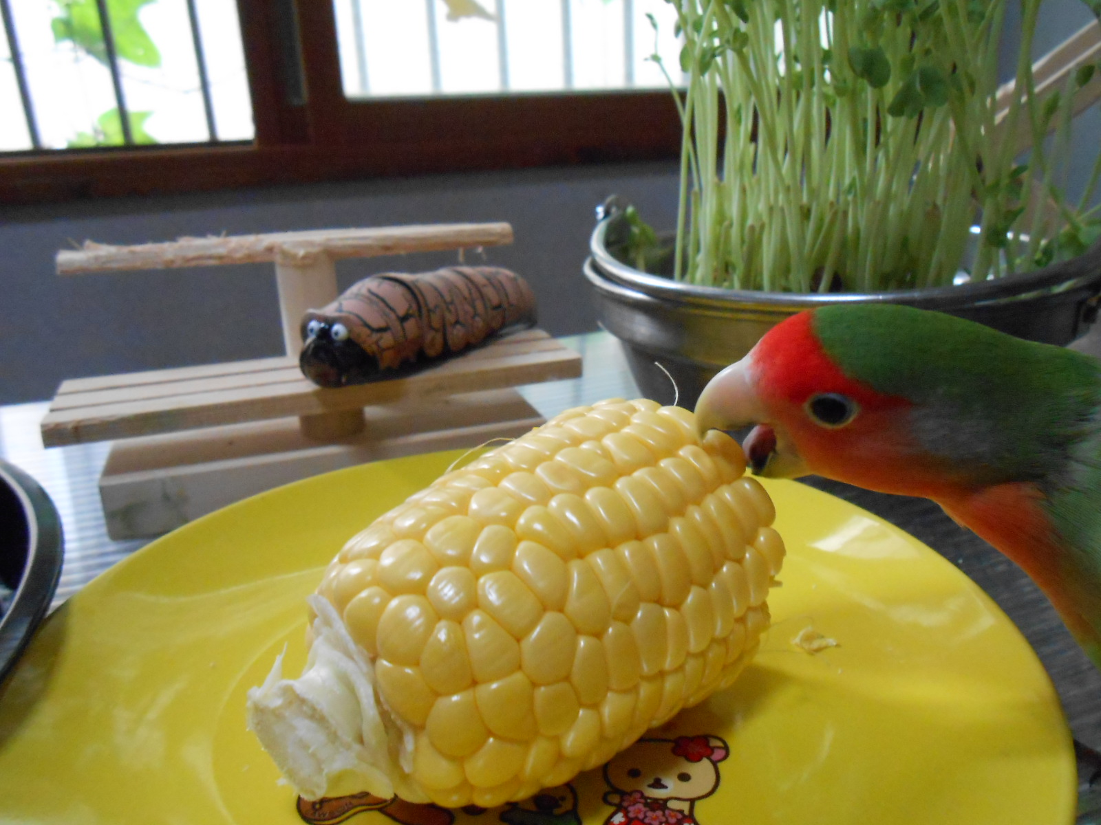 とあるお宅ではもろこしを粒で、さらに中の胚芽を鳥出して差しださないと食べないとかなんとか言っておりましたが、我が家でのモロコシ胚芽部分の利用法は困り顔