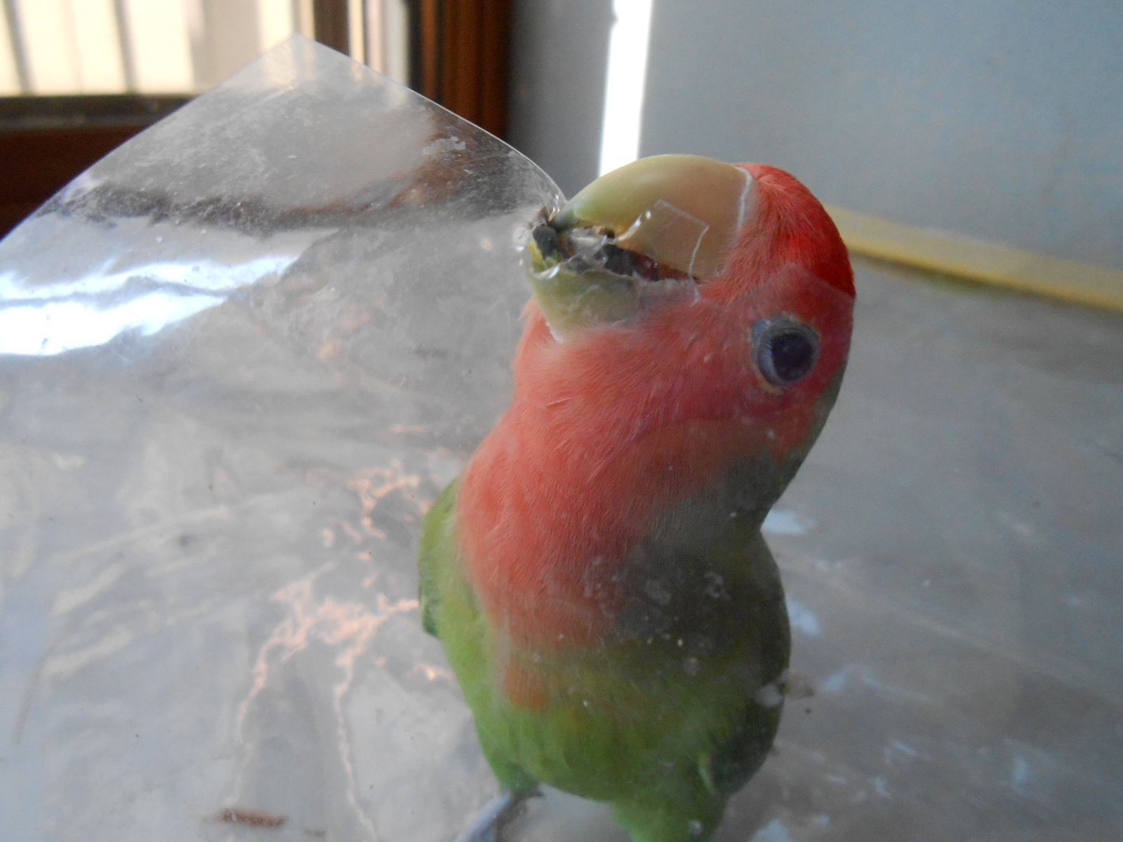よく聞く(見る)のが、折れた羽軸は抜かない限り出血止まらない・・・というヤツですが、アクリノール染み込ませたコットンで押えてみますと血液がサラッとではなく粘性っぽくなってきてたので、こりゃ止まるな~~なところまで来てましたので今回は抜かずに。