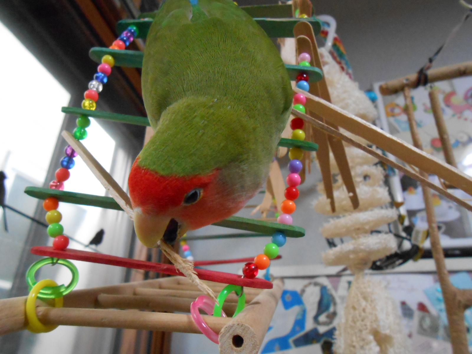 コザクラインコさんは好奇心旺盛だけど警戒心も強いので初モノはなかなか近寄らないと言われてますけど、シャイちゃん野性なのに仕事熱心なエエ子やぁ~~~